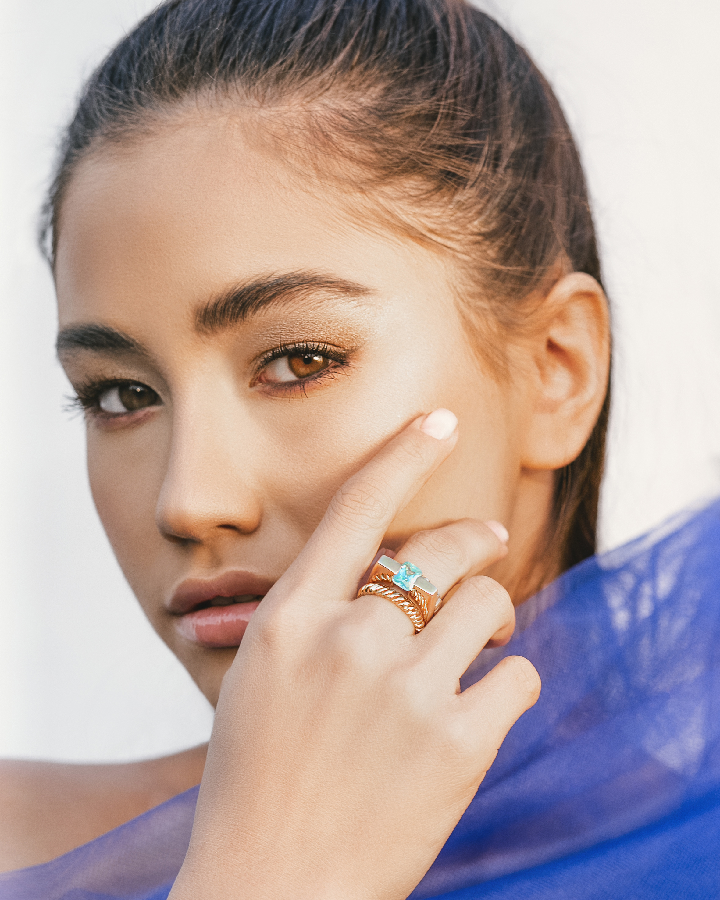 The Auryn Glow Ring is crafted in 18K Gold with a luminous finish, representing the radiant beauty of golden hues.