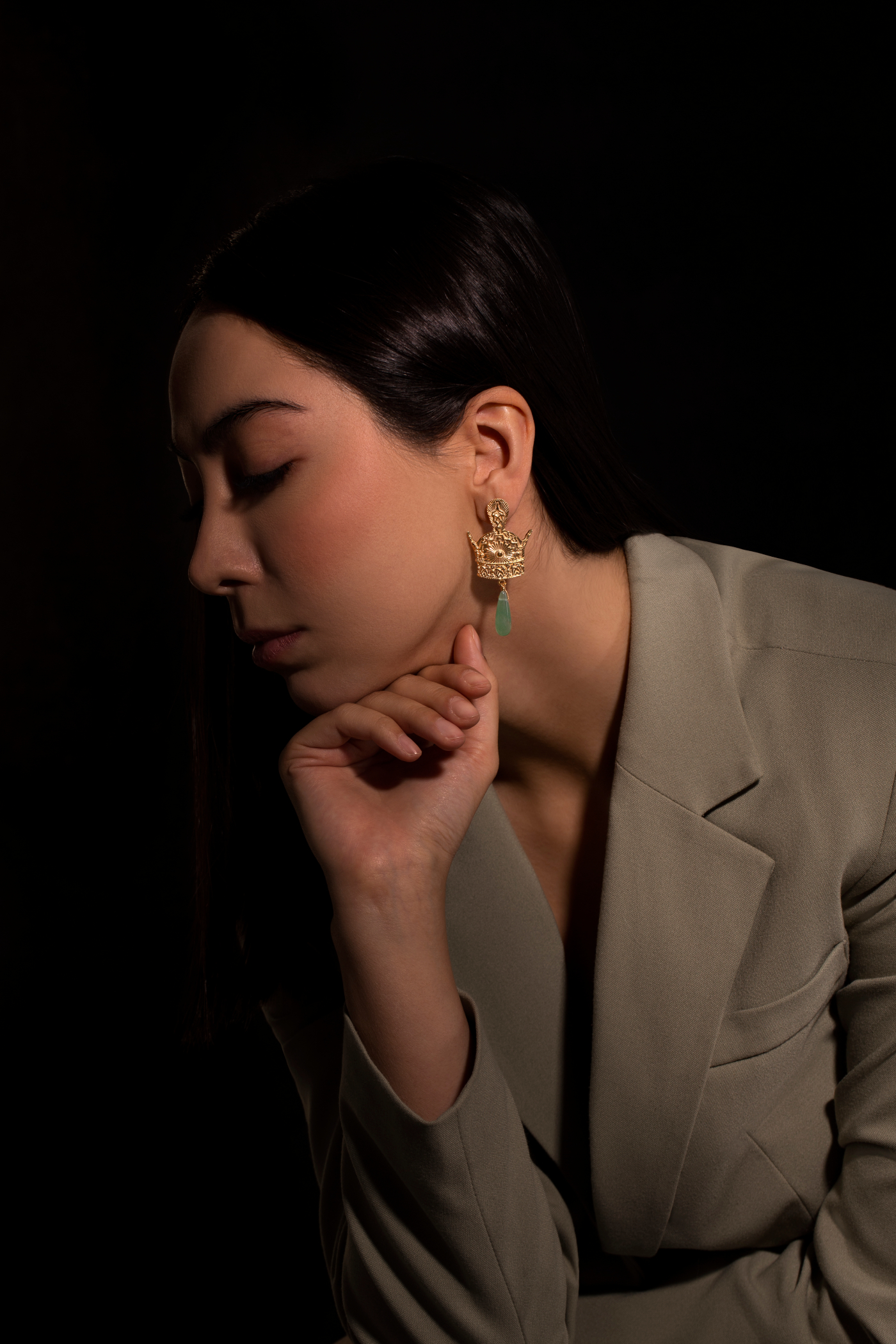 Inspired by the regal splendor of Persian royalty, our Imperial Persia Collection reflects the elegance and grandeur of the Shahanshahi era. Each piece celebrates heritage, featuring carefully selected natural stones and exclusive embroidery fabric set in 18k gold-plated sterling silver. Designed to bring a majestic and refined touch to your jewelry collection.